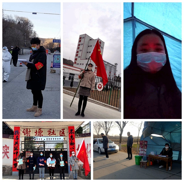 截至目前,馬克思主義學院有30名師生黨員參加了“臨時黨支部”和黨員先鋒模范隊,還有7名普通學生以志愿者的身份參與到當?shù)匾咔榉揽毓ぷ髦?。師生防控疫情的足跡遍布山東省泰安市,廣西壯族自治區(qū),陜西省西安市、咸陽市、延安市、漢中市、渭南市、商洛市、周至縣、黃陵縣等地。寒風中,他們不畏艱辛、不怕兇險,或耐心細致地為進出村口的人員測量體溫,或認真負責地對出入車輛進行登記,或一絲不茍地上門排查,或滿腔熱情地開展防疫宣傳和病毒消殺工作。