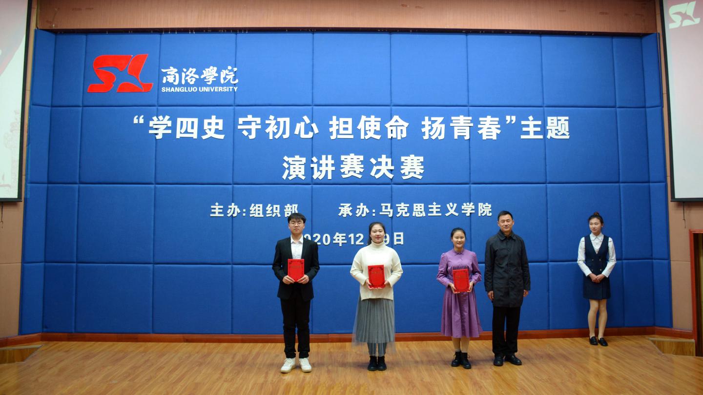 為深入貫徹習近平總書記關于深入學習黨史、新中國史、改革開放史、社會主義發(fā)展史的重要指示精神,引導師生知史愛黨、知史愛國,以實際行動迎接建黨100周年,12月9日,由校組織部主辦,馬克思主義學院承辦的“學四史、守初心、擔使命、揚青春”主題演講賽決賽在圖書館二樓報告廳舉辦。校黨委書記龍治剛、校長范新會、黨委副書記劉勇出席并為獲獎選手頒發(fā)榮譽證書,有關部門負責人、各二級學院師生代表共200余人觀看了比賽。
