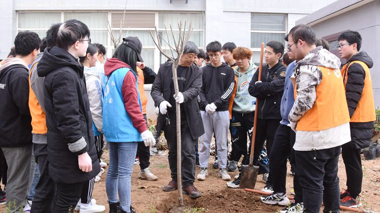 3月12日上午,校團(tuán)委組織青馬班學(xué)員、學(xué)生會(huì)干部和化材學(xué)院學(xué)生志愿者50余人前往丹江校區(qū)開展植樹活動(dòng),引導(dǎo)廣大學(xué)生積極參與丹江校區(qū)綠化建設(shè)。后勤保障處選派高級(jí)實(shí)驗(yàn)師閆玉厚為志愿者們?cè)敿?xì)講解植樹流程,使同學(xué)們?cè)诮邮軇趧?dòng)教育的同時(shí)增添了園林樹木栽培知識(shí)。全體同學(xué)熱情高漲、干勁十足,戴上手套、拿著鐵锨等工具來(lái)到指定區(qū)域,運(yùn)用剛學(xué)到的知識(shí)俯身?yè)焓八槭?,揮鍬鏟土、扶正樹苗、培土壓實(shí),提桶澆水,一絲不茍地每一棵樹苗“安家”,以實(shí)際行動(dòng)為校園綠色建設(shè)貢獻(xiàn)力量。