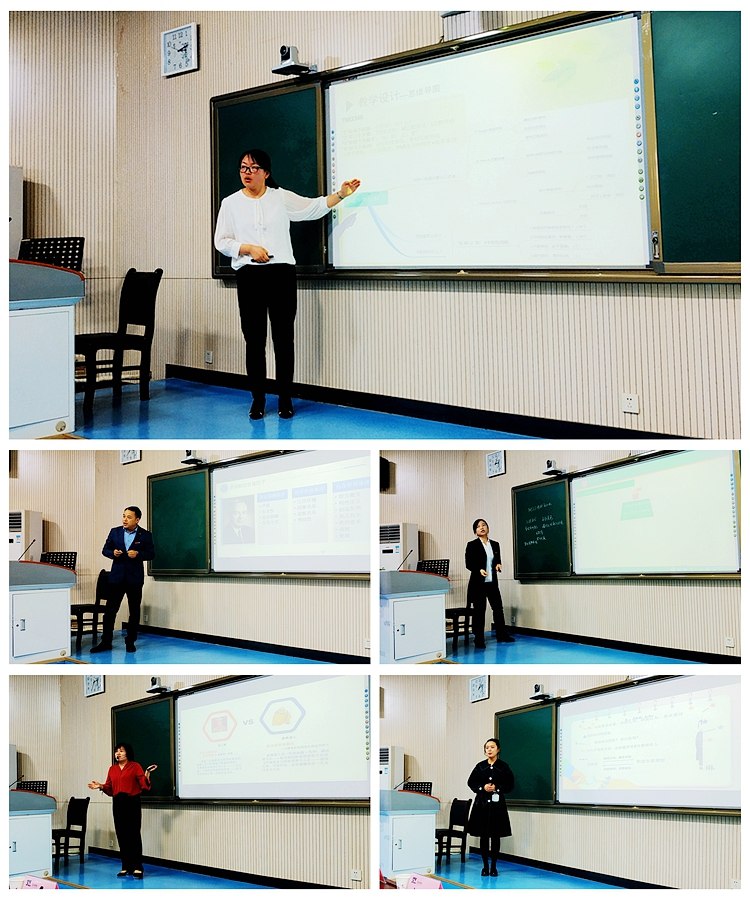 大賽啟動(dòng)以來,共有11名教師參加初賽,經(jīng)過層層選拔,最終5位教師入圍決賽。決賽現(xiàn)場,參賽教師以PPT課件、板書等教學(xué)方式分別進(jìn)行了5分鐘現(xiàn)場教學(xué)設(shè)計(jì)匯報(bào)與15分鐘教學(xué)展示。評(píng)委進(jìn)行了現(xiàn)場打分和點(diǎn)評(píng)。