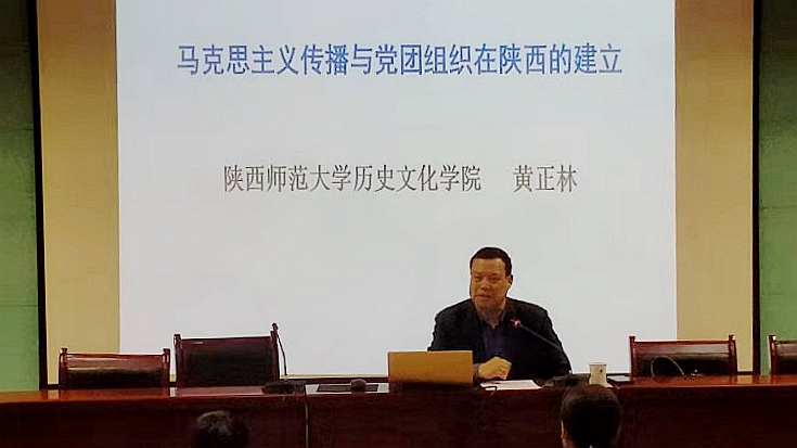 4月28日下午,馬克思主義學(xué)院在圖書館一樓報(bào)告廳舉辦黨史學(xué)習(xí)教育專題報(bào)告會(huì)。特邀陜西師范大學(xué)歷史文化學(xué)院教授、博士生導(dǎo)師黃正林為師生作了主題為“馬克思主義傳播與陜西黨團(tuán)組織的建立”的學(xué)術(shù)報(bào)告會(huì)。報(bào)告會(huì)由馬克思主義學(xué)院院長蔣正治主持。