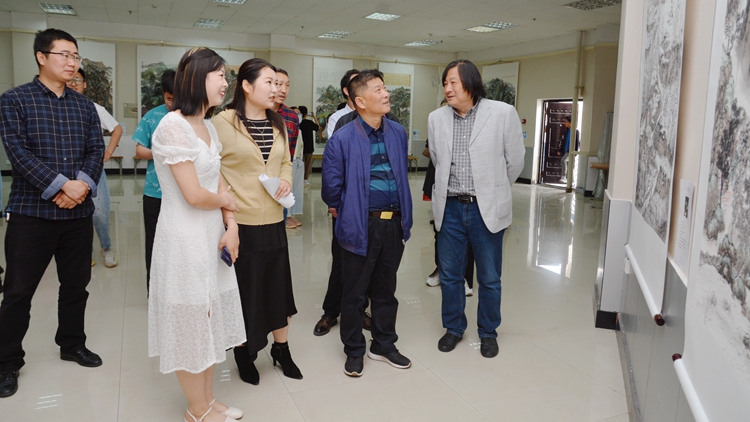 開幕式結(jié)束后,范新會在相關(guān)負責(zé)人的陪同下參觀了畫展,并與創(chuàng)作學(xué)生進行了親切交流。