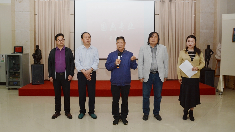 范新會在講話中指出,藝術(shù)學(xué)院結(jié)合區(qū)域人文特色,凝練打造以“秦嶺畫派”為代表的地方文化藝術(shù)品牌,為商洛文化藝術(shù)發(fā)展作出了積極貢獻。2020年我校美術(shù)學(xué)專業(yè)成功獲批省級“一流專業(yè)”,是學(xué)校深化教育教學(xué)改革、積極探索應(yīng)用型人才培養(yǎng)模式的成果體現(xiàn),也是美術(shù)學(xué)專業(yè)全體師生共同努力的結(jié)果。范新會要求藝術(shù)學(xué)院廣大師生堅持以習(xí)近平新時代中國特色社會主義思想為指導(dǎo),以大秦嶺的自然生態(tài)和商洛人文歷史為背景,描繪商洛的好山好水,描繪商洛人民及我校師生在鄉(xiāng)村振興及全面建設(shè)社會主義現(xiàn)代化國家新征程上只爭朝夕、真抓實干的優(yōu)秀事跡,為我校高質(zhì)量發(fā)展貢獻更大力量。