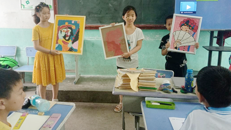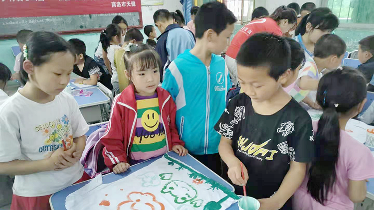 活動(dòng)中,師生為該校留守兒童贈(zèng)送了圖畫本、鉛筆、橡皮等繪畫用品。向小朋友們展示了校藝術(shù)學(xué)院學(xué)生制作的泥塑、石頭畫、剪紙拼畫、電腦繪畫等美術(shù)作品,拓展了小朋友們的審美視野,增強(qiáng)了大家的邏輯思維與形象思維能力,激發(fā)了大家熱愛(ài)美、發(fā)現(xiàn)美、追求美的熱情。師生還進(jìn)行了“T恤衫彩繪”現(xiàn)場(chǎng)學(xué)創(chuàng)實(shí)踐,用美術(shù)實(shí)踐與T恤衫繪畫相結(jié)合的教學(xué)方式,鼓勵(lì)和引導(dǎo)小朋友們嘗試多樣思維和多元表現(xiàn),進(jìn)一步增強(qiáng)了大家的實(shí)踐創(chuàng)作能力。在我校師生一對(duì)一、手把手的耐心講解與悉心指導(dǎo)下,每個(gè)小朋友都獨(dú)立完成了精美的美術(shù)作品。