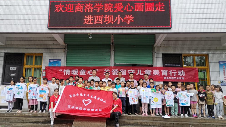 7月2日,我校承擔(dān)的公益項(xiàng)目“鄉(xiāng)村愛(ài)心畫圃”走進(jìn)了洛南縣保安鎮(zhèn)西壩小學(xué),項(xiàng)目指導(dǎo)教師、藝術(shù)學(xué)院教師李斌、王淦卿和李萍及項(xiàng)目成員參加活動(dòng)。