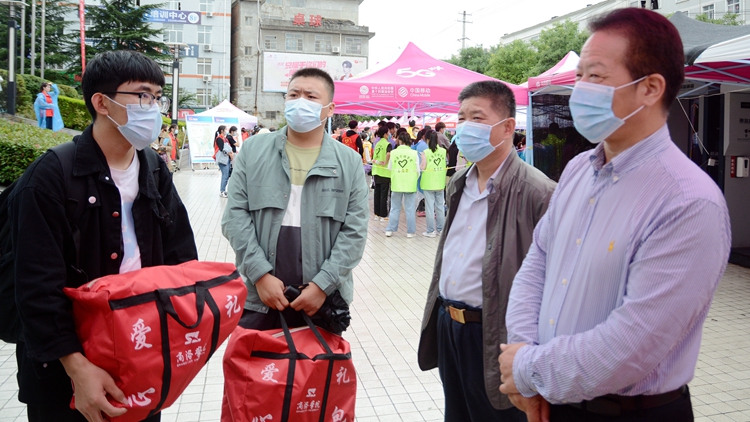 秋雨潤(rùn)校園,熱情益彰顯。9月1日,我校第一批新生懷揣夢(mèng)想來校報(bào)到,開啟一段新的人生征程。校黨委書記張志昌、校長(zhǎng)范新會(huì)、黨委副書記彭虎軍、副校長(zhǎng)劉寶盈在相關(guān)職能部門負(fù)責(zé)人的陪同下深入迎新現(xiàn)場(chǎng),檢查指導(dǎo)迎新工作,看望慰問報(bào)到新生,并為家庭經(jīng)濟(jì)困難新生發(fā)放愛心禮包。