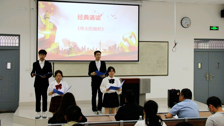 活動(dòng)開始,同學(xué)們誦讀了一曲歌頌黨的史詩——《偉大的旗幟》,唱響紅色經(jīng)典《歌唱祖國》,獻(xiàn)禮建黨百年華誕。大家在鏗鏘有力的誦讀聲和嘹亮的歌唱聲中,共同回憶黨的輝煌歷史,感悟信仰的偉力,堅(jiān)定了聽黨話、跟黨走的信心,燃燒了愛國主義激情,唱響了時(shí)代最強(qiáng)音——強(qiáng)國有我。