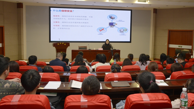 報告會上,喻鈞教授以短視頻《一個人的普通一天》為切入,解讀了什么是信息安全、信息安全要素和特性。結(jié)合國際和國內(nèi)有影響力的重大網(wǎng)絡(luò)安全事件,分析了信息安全面臨的威脅。以《商學(xué)院》雜志《別忘了關(guān)門》的小故事為例,介紹了常見網(wǎng)絡(luò)安全攻擊手段,闡述了培養(yǎng)信息安全意識的重要性。解讀了國家網(wǎng)絡(luò)安全政策及《國家網(wǎng)絡(luò)安全法》的主要框架,并向師生介紹了信息安全防護(hù)的主要方法。喻鈞教授還向大家分享了西安工業(yè)大學(xué)在網(wǎng)絡(luò)安全人才培養(yǎng)方面的經(jīng)驗和做法,她呼吁廣大師生要提高安全防范意識,警惕各種形式的安全陷阱和詐騙手段,關(guān)注信息安全,學(xué)習(xí)安全知識,遵守安全法規(guī),做好安全防護(hù),為維護(hù)國家安全作出應(yīng)有的貢獻(xiàn)。