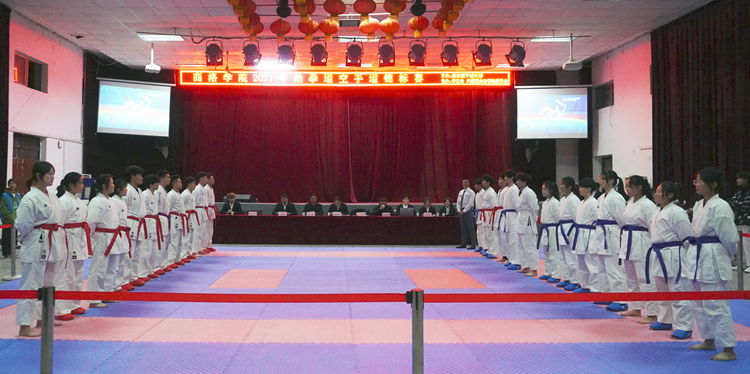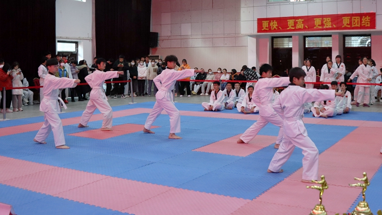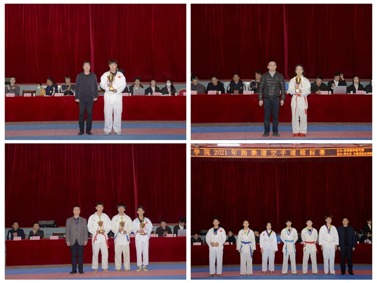 12月1日,由校體育教學(xué)研究部主辦,學(xué)生處、團委協(xié)辦的2021年跆拳道空手道錦標賽在我校大學(xué)生活動中心舉行。學(xué)生處處長楊存典、團委副書記廉明、教務(wù)處副處長高擴昌、體育教學(xué)研究部副主任黃顯忠,及各二級學(xué)院師生代表觀摩了比賽。