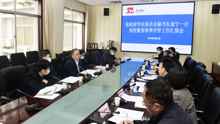 2月15日上午,陜西省政府學(xué)位委員會(huì)秘書長袁寧率督導(dǎo)組一行6人來校檢查指導(dǎo)春季開學(xué)工作。校長范新會(huì)主持召開工作匯報(bào)會(huì),黨委副書記彭虎軍,副校長郭瑾,商洛市教育局副局長龔勝利出席會(huì)議。