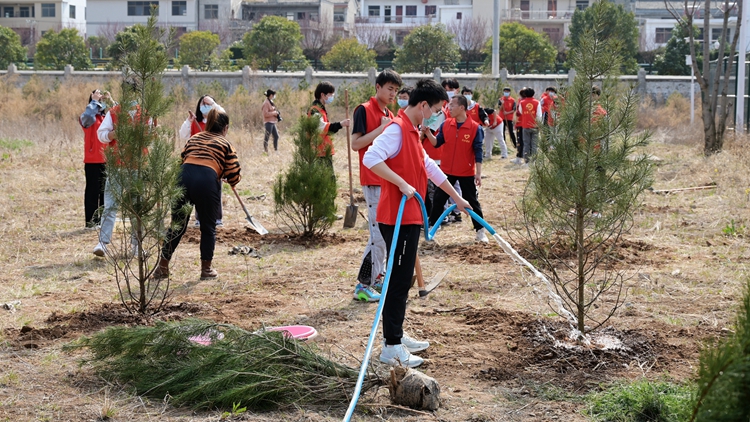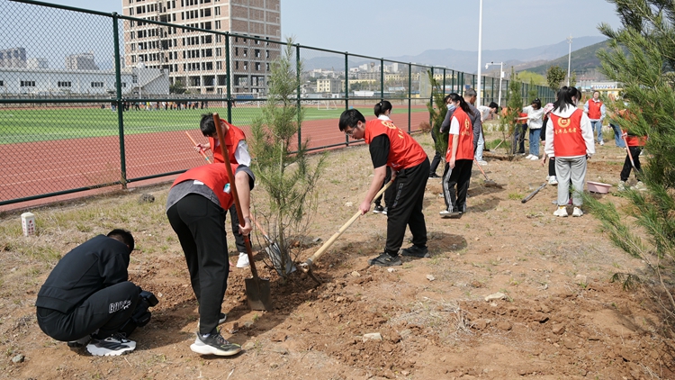 春到人間草木知,正值一年添綠時(shí)。在第44個(gè)全民義務(wù)植樹節(jié)來(lái)臨之際,我校黨員干部師生廣泛參與義務(wù)植樹活動(dòng)。3月11日下午,校領(lǐng)導(dǎo)范新會(huì)、彭虎軍、劉勇、劉寶盈、王新軍、郭瑾與青年志愿者們一起來(lái)到丹江校區(qū),為校園再添綠裝。黨委辦公室、發(fā)展規(guī)劃處、后勤保障處、丹江校區(qū)管理處等部門職工和團(tuán)委青年志愿者協(xié)會(huì)近百名師生參加活動(dòng)。