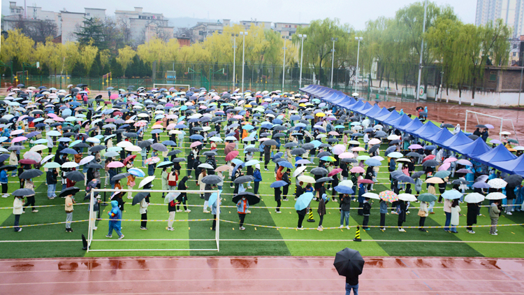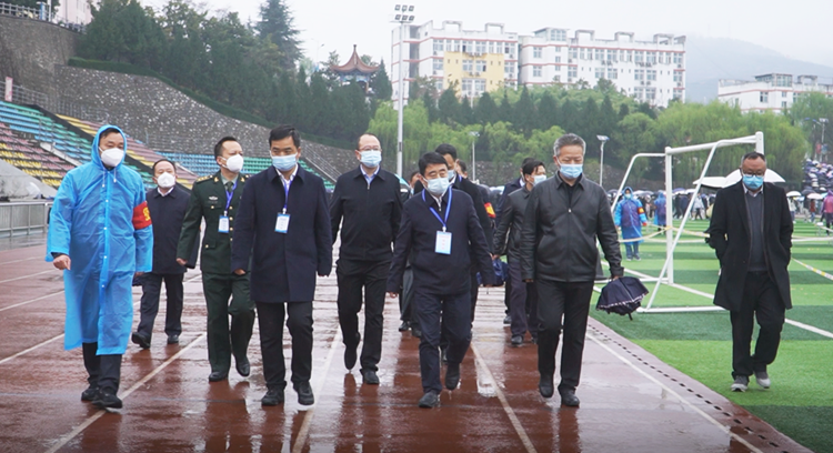 當(dāng)天清晨6時(shí)30分,參加全員核酸檢測的人員在細(xì)雨中有序入場。學(xué)校在北新街校區(qū)大、小體育場及南院家屬區(qū)設(shè)置28個(gè)采樣臺(tái),全體師生員工及臨聘人員,環(huán)衛(wèi)、食堂、超市、浴室、快遞、打印、理發(fā)等從業(yè)人員,在校居住的教職工家屬及離退休職工在志愿者的引導(dǎo)下依次掃碼登記,接受核酸檢測。全體人員嚴(yán)格保持“一米線”距離,現(xiàn)場秩序井然。部分留觀人員和在校隔離學(xué)生,由醫(yī)護(hù)人員上門進(jìn)行采樣工作。商洛市委副書記趙曉寧在張志昌等的陪同下來到我校大體育場,視察全員核酸檢測工作現(xiàn)場,并對(duì)我校工作給予高度評(píng)價(jià)。