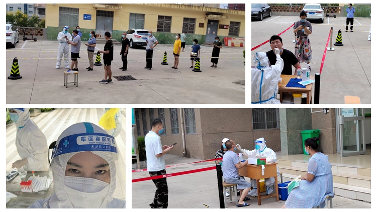 疫情發(fā)生以來,黨委辦公室、后勤保障處主要負(fù)責(zé)人和相關(guān)工作人員日夜堅(jiān)守在工作崗位上,確保各類信息暢通、防控工作落實(shí)到位、校內(nèi)師生生活保障無憂。校醫(yī)院任秀梅、阮佳、童婭等工作人員克服家庭困難,每日為校內(nèi)700余名師生員工和家屬進(jìn)行核酸檢測采樣。每個(gè)核酸采樣臺(tái)每次需要3名志愿者,協(xié)助核酸檢測掃描和消毒工作。黨委辦公室和人事處就近抽調(diào)校內(nèi)人員,廣大黨員職工踴躍報(bào)名,教職工張可可、李志超、王旭紅、李先勇等60余人分批輪崗,確保每日全員核酸檢測采樣工作順利完成。今年暑期天氣酷熱,協(xié)助核酸檢測的志愿者每天清晨5點(diǎn)半穿好防護(hù)服,一直工作到上午11點(diǎn)。在3、4個(gè)小時(shí)的高強(qiáng)度工作后,全身都被汗水浸濕。建工學(xué)院教師丁少男博士做完志愿工作后,在朋友圈中感慨地表示,“對(duì)于很多人來說,只是簡單的排隊(duì)掃碼,做一次核酸,對(duì)志愿者和檢測人員來說,他們要經(jīng)過千百次的重復(fù)!單純的掃碼都可以讓全身衣服濕透。力所能及做一點(diǎn)自己的工作,希望這座城早點(diǎn)迎來勝利的曙光!”