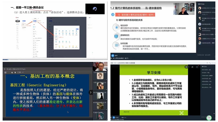8月29日,我校2022-2023學(xué)年度第一學(xué)期正式開(kāi)始線上教學(xué)。全校師生按照“延期不停教、延期不停學(xué)”要求,通過(guò)超星學(xué)習(xí)通、釘釘、雨課堂、微信、QQ群、騰訊會(huì)議等在線教學(xué)平臺(tái)開(kāi)展教學(xué),全校279名主講教師在線講授422門(mén)次課程,在線上課學(xué)生22749人次,線上教學(xué)運(yùn)行整體平穩(wěn)有序。