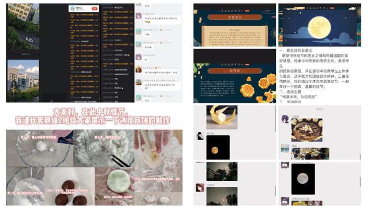 數(shù)計(jì)學(xué)院開展了線上猜燈謎、賞明月、講中秋傳統(tǒng)故事等活動(dòng)。有的新生通過視頻等方式展示了自己動(dòng)手制作月餅的全過程,學(xué)院教師通過VR帶領(lǐng)新生“云端逛校園”,向?qū)W生展示我校全貌。