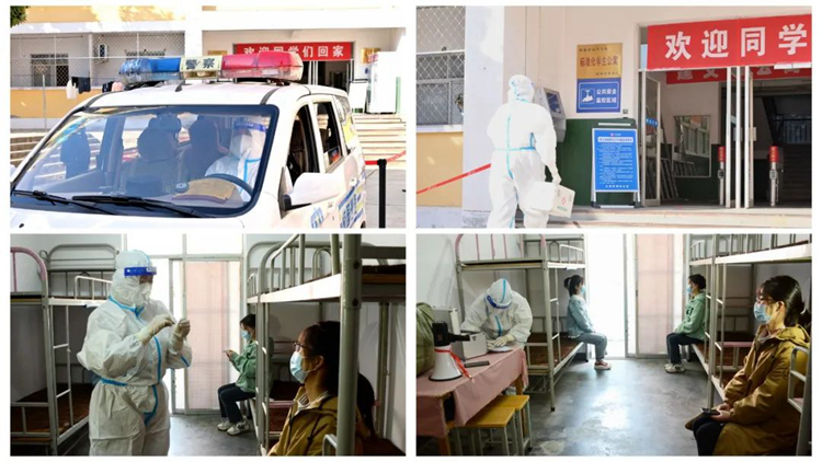 下午,演練以一名返校學(xué)生自測體溫高于37.3℃為背景,模擬學(xué)校立即啟動疫情防控應(yīng)急處置預(yù)案,實施“疑似”病例應(yīng)急處置轉(zhuǎn)運和密切接觸者應(yīng)急處置管控等對應(yīng)緊急防控措施。各工作組配合到位、緊張有序、快速有效,各環(huán)節(jié)有條不紊、處置得到。通過現(xiàn)場情景模擬結(jié)合旁白解說的方式,完整展現(xiàn)了“發(fā)現(xiàn)報告、現(xiàn)場復(fù)查、處置轉(zhuǎn)運、環(huán)境消殺”等場景,依次完成對發(fā)熱病例采取隔離防護,聯(lián)系定點醫(yī)院進行專車轉(zhuǎn)運,對密接人員和場地進行臨時管控,完成所在宿舍整棟樓及隔離房的全面消殺,同步有效在全校范圍內(nèi)開展流調(diào)工作等應(yīng)急處置內(nèi)容。