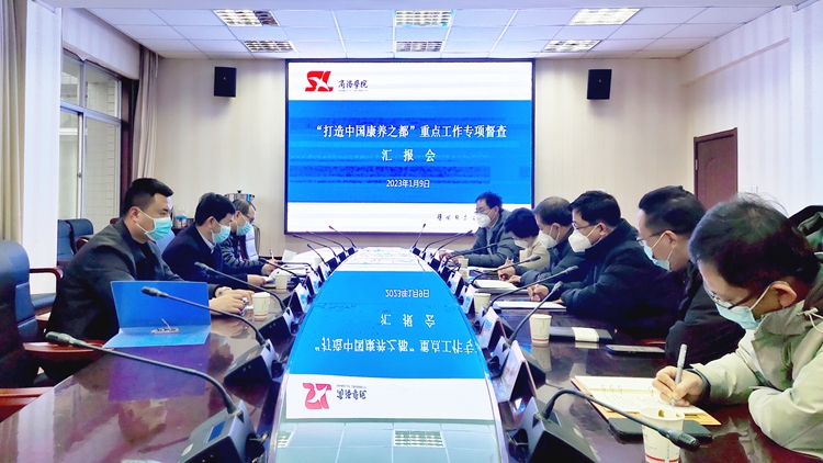 1月9日,市文旅局三級調(diào)研員胡金鑫帶領(lǐng)商洛市打造中國康養(yǎng)之都工作推進(jìn)專班督查小組來到我校,督查學(xué)校服務(wù)商洛“康養(yǎng)之都”建設(shè)重點(diǎn)工作推進(jìn)情況。副校長王新軍出席匯報(bào)會(huì)。人事處、發(fā)展規(guī)劃處、科技處、生物醫(yī)藥與食品工程學(xué)院、健康管理學(xué)院等單位負(fù)責(zé)人參加會(huì)議。