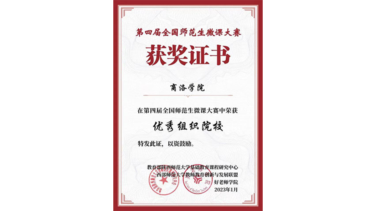 近日,第四屆全國師范生微課大賽結果公布。我校師生獲得各類獎項13項,其中學生榮獲特等獎1項、一等獎2項、二等獎8項,人文學院喬金果老師榮獲優(yōu)秀指導教師,學校榮獲優(yōu)秀組織單位獎。這是我校參與此項賽事以來首次榮獲優(yōu)秀組織獎,實現了學校集體獎、學生獲獎等級和獲獎總數多項突破。