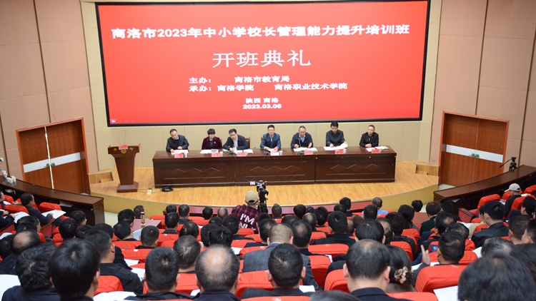 3月6日,商洛市2023年中小學校長管理能力提升培訓班在我校開班。副校長劉寶盈、商洛市教育局局長宋奇志出席開班典禮。商洛市教育局副局長馮加漁主持開班典禮。