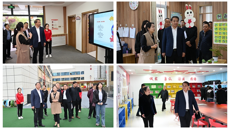 會(huì)前,王新軍與我校相關(guān)部門負(fù)責(zé)人、附屬學(xué)校班子成員一同參觀了2022年度合作共建的項(xiàng)目成果。