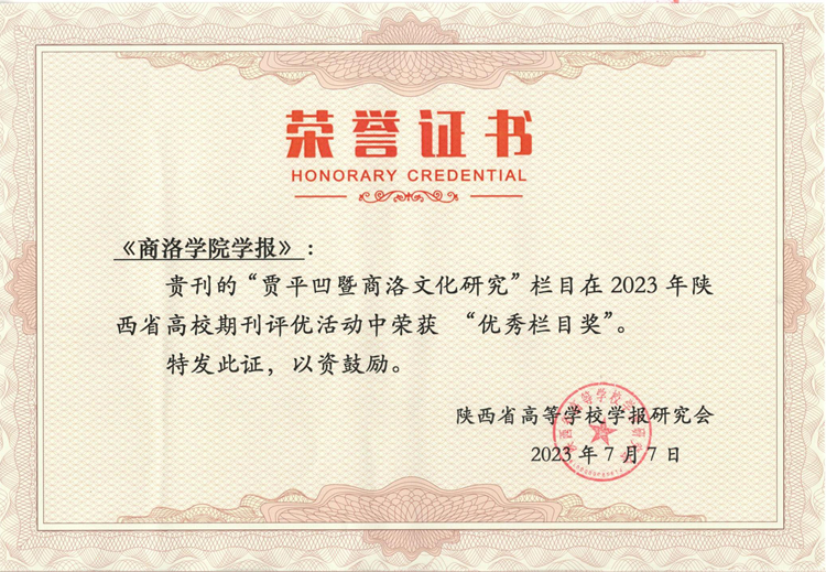 7月7日,2023年度陜西省高校期刊評優(yōu)結果揭曉,我校主辦的《商洛學院學報》被評為“陜西高校精品社科期刊”,學報優(yōu)勢欄目“賈平凹暨商洛文化研究”獲“優(yōu)秀欄目獎”。
