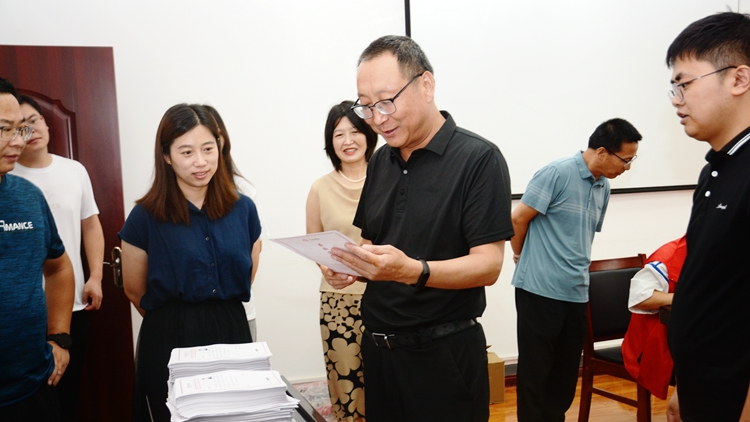 劉寶盈一行先后深入招生咨詢工作辦公室、錄取通知書制作和分揀現(xiàn)場,詳細(xì)了解2023級本科招生錄取進(jìn)度、錄檢工作進(jìn)展、通知書分裝郵寄等相關(guān)工作情況,對今年招生錄取工作給予充分肯定,對招生辦公室全體工作人員在暑期堅守工作崗位、辛勤付出表示慰問。在通知書制作分揀場地,劉寶盈仔細(xì)查看了新設(shè)計的錄取通知書,為通知書中飽含的人文關(guān)懷點贊。