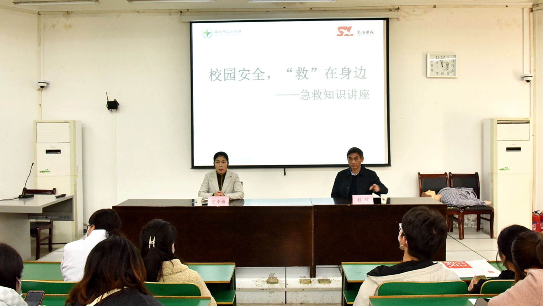 為深入貫徹落實(shí)習(xí)近平總書記關(guān)于校園安全重要指示精神,強(qiáng)化學(xué)校應(yīng)急救護(hù)知識(shí)普及,提高師生安全意識(shí)與急救能力,11月22日下午,我校邀請商洛市中心醫(yī)院急診科主任程輝來校為師生作《校園安全,“救”在身邊》為主題的急救知識(shí)講座。2023級(jí)輔導(dǎo)員,學(xué)生代表,校醫(yī)院所有醫(yī)務(wù)人員及部分自愿參會(huì)的師生共計(jì)200余人參加講座。講座由校醫(yī)院院長任秀梅主持。