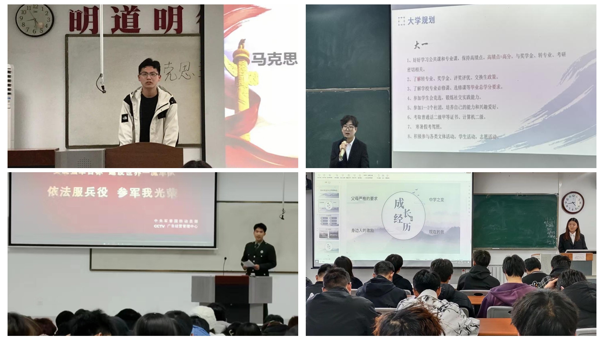 活動開展以來,各學院共選拔94名優(yōu)秀學生組成宣講團,主要圍繞專業(yè)學習、社會實踐、志愿服務、自強感恩、就業(yè)創(chuàng)業(yè)、參軍入伍、校園文化等方面開展事跡宣講。馬克思主義學院國家勵志獎學金獲得者馮佳樂向同學展示了心懷感恩、砥礪追夢的心路歷程;人文學院國家獎學金獲得者楊運任結(jié)合個人學習經(jīng)歷進行了學業(yè)規(guī)劃宣講,展現(xiàn)了昂揚奮進的進取精神;數(shù)計學院退伍學生王立強以“熱血報國少年志、青春無悔勇?lián)敗睘橹黝}講述了入伍歷程,向同學們傳遞“奮斗的青春更美麗”的信念;電信學院校級“十佳大學生”楊馨講述了自己的青春奮斗故事,闡述了志存高遠、勤勉篤行的人生態(tài)度;化材學院“互聯(lián)網(wǎng)+”大賽獲獎學生胡佳寧分享參與競賽經(jīng)歷,號召同學踴躍投身創(chuàng)新創(chuàng)業(yè)實踐;生物學院“優(yōu)秀志愿者”劉溪溪以個人志愿服務活動為主線,展現(xiàn)了行知精神與青春使命;建工學院全國師范生微課大賽二等獎獲得者張芊樺講述了專業(yè)學習引領(lǐng)個人成長的心靈感悟;經(jīng)管學院2023屆畢業(yè)生海江結(jié)合自身求職經(jīng)歷,開展職業(yè)規(guī)劃宣講,鼓勵同學不斷提升綜合素養(yǎng);藝術(shù)學院“美育活動優(yōu)秀踐行者”雷芳通過講述多姿多彩的校園活動,展現(xiàn)了青年學子的青春活力;健康學院杜雯靜分享了個人參與“三下鄉(xiāng)”實踐經(jīng)歷,勉勵同學主動深入基層,把美好青春故事寫在祖國大地上。宣講團成員的奮斗歷程和青春心聲詮釋了當代大學生將“小我”融入“大我”,傳承先進文化、練就過硬本領(lǐng),砥礪奮進、接續(xù)奮斗的良好精神風貌。