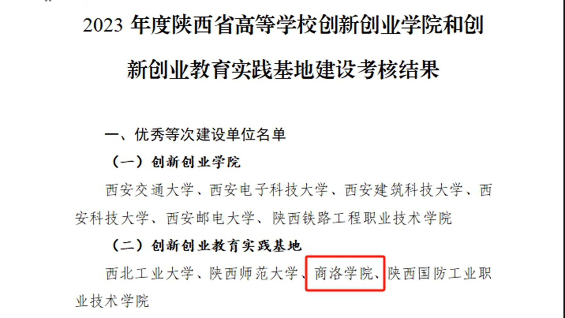 日前,陜西省教育廳公布了2023年度陜西省高等學校創(chuàng)新創(chuàng)業(yè)學院和創(chuàng)新創(chuàng)業(yè)教育實踐基地考核結果。我校省級創(chuàng)新創(chuàng)業(yè)教育實踐基地獲評考核“優(yōu)秀”等次,是此次全省唯一一所獲評優(yōu)秀等次的地方應用型本科院校。
