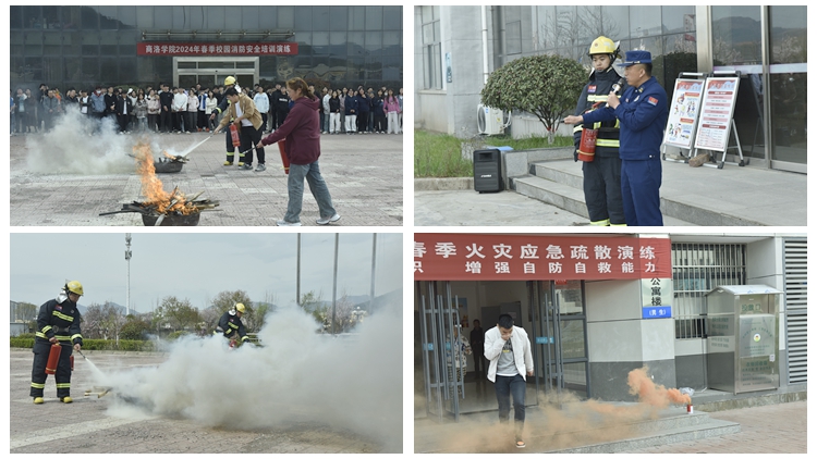 為提高廣大師生消防安全意識(shí)和自防自救能力,堅(jiān)決防范和遏制火災(zāi)事故發(fā)生,3月27日下午,我校在丹江校區(qū)舉辦2024年春季校園消防安全系列活動(dòng)。商洛高新區(qū)消防所所長(zhǎng)張斌受邀到校進(jìn)行消防安全知識(shí)培訓(xùn)和演練指導(dǎo)。保衛(wèi)處負(fù)責(zé)人,電信學(xué)院、化材學(xué)院、生物學(xué)院黨委負(fù)責(zé)人,丹江校區(qū)管理處、圖書館、實(shí)訓(xùn)中心、后勤保障處相關(guān)工作人員,商洛高新區(qū)消防所消防員及我校師生代表200余人參加了培訓(xùn)和演練。