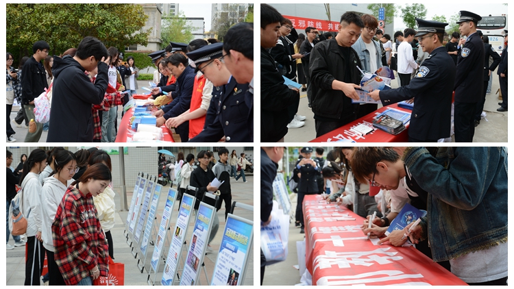在活動(dòng)現(xiàn)場(chǎng),工作人員向師生介紹了在線上參與“對(duì)邪教說(shuō)不”簽名和反邪教知識(shí)答題等活動(dòng)的方式和步驟,并為現(xiàn)場(chǎng)師生發(fā)放國(guó)家反邪教手冊(cè)、活動(dòng)彩頁(yè)、宣傳袋等宣傳資料2500余份。參與活動(dòng)的師生認(rèn)真觀看了反邪教宣傳展板,并在橫幅上鄭重地簽下個(gè)人姓名,以表達(dá)抵制邪教的決心。