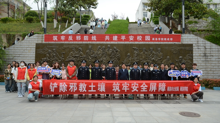 4月15日當(dāng)天,統(tǒng)戰(zhàn)部聯(lián)合商洛市公安局分別在北新街校區(qū)和丹江校區(qū)開(kāi)展“筑牢反邪防線,共建平安校園”反邪教警示宣傳教育簽名活動(dòng)。商洛市公安局相關(guān)部門(mén)負(fù)責(zé)人及工作人員,學(xué)校黨委辦公室、統(tǒng)戰(zhàn)部、保衛(wèi)處相關(guān)負(fù)責(zé)人及工作人員,各二級(jí)學(xué)院學(xué)工辦主任、輔導(dǎo)員代表、學(xué)生及志愿者共280余人參加了本次活動(dòng)。