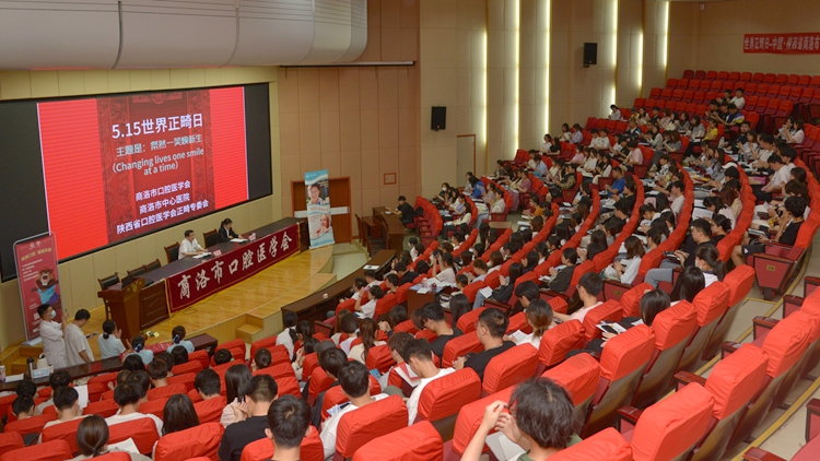 為向師生普及口腔健康知識,增強師生及時防治口腔及牙周疾病的意識,正值第八個世界正畸健康日,5月15日下午,我校邀請商洛市中心醫(yī)院口腔科主任醫(yī)師李阿峰來校,為師生以《健康生活,從“齒”開始》為題作健康知識講座。商洛市中心醫(yī)院口腔科相關醫(yī)護人員,校醫(yī)院負責人、相關工作人員及400余名師生代表參加活動。