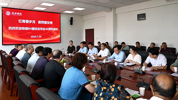 芳華四十載,難忘商院情。7月20日,我校物理84屆校友闊別40載后,從天南海北回母校團聚,重溫師生情誼,共話發(fā)展變遷。副校長王新軍陪同校友參觀校園并代表學校接受校友捐贈的牌匾。國內合作與校友工作處、電信學院相關負責人及教師代表參加活動。座談會由電信學院黨委書記趙永平主持。
