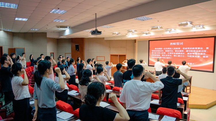 學(xué)校學(xué)科辦公室、督導(dǎo)與評估中心、教務(wù)處、科技處、社科處、學(xué)生處、人事處等部門負(fù)責(zé)人解讀了學(xué)科建設(shè)、專業(yè)認(rèn)證、教學(xué)規(guī)范、科研管理、學(xué)生管理及人事管理等方面政策。在專題輔導(dǎo)環(huán)節(jié),我校喬成芳教授、程國教授、劉玉婷老師、郭耀東博士分別圍繞平臺托舉、團(tuán)隊帶動、賽事助推、根植地方等方面為新入職教師作專題輔導(dǎo)。在認(rèn)家聯(lián)誼活動環(huán)節(jié),校工會組織開展了教師成長團(tuán)體心理沙龍、節(jié)目表演、教唱校歌等相關(guān)活動。參訓(xùn)教職工還學(xué)習(xí)了新時代高校教師職業(yè)行為準(zhǔn)則、簽訂師德師風(fēng)承諾書、開展入職宣誓,并集體參觀了北新街校區(qū)和丹江校區(qū),進(jìn)一步熟悉了校園環(huán)境布局。