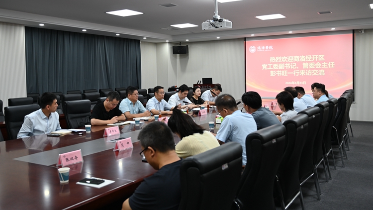王新軍對彭書旺一行蒞臨學(xué)校表示誠摯歡迎,對商洛經(jīng)開區(qū)批準(zhǔn)建設(shè)以來取得的成績表示祝賀,他指出,商洛經(jīng)開區(qū)立足稟賦優(yōu)勢,創(chuàng)新引才用才政策,謀準(zhǔn)產(chǎn)業(yè)定位,推動企業(yè)提質(zhì)增效,成功通過省級認(rèn)定,是科技創(chuàng)新驅(qū)動發(fā)展新質(zhì)生產(chǎn)力的重要載體。他簡要介紹了我校辦學(xué)定位、特色與辦學(xué)成果,重點介紹了《商洛學(xué)院服務(wù)商洛高質(zhì)量發(fā)展50條措施》的落實情況及取得成效。他表示,學(xué)校將深刻學(xué)習(xí)領(lǐng)會黨的二十屆三中全會精神,自覺融入和服務(wù)商洛高質(zhì)量發(fā)展大局,持續(xù)深化“三項改革”,深度融入秦創(chuàng)原創(chuàng)新驅(qū)動平臺,憑借創(chuàng)新政策和優(yōu)質(zhì)平臺推進(jìn)科技成果轉(zhuǎn)化。希望雙方以此次合作交流為契機,推動產(chǎn)學(xué)研用深度融合,提升科研成果轉(zhuǎn)化實效,搭建“人才共享、資源共用、科研共建”的溝通交流平臺,共同推進(jìn)區(qū)域高質(zhì)量發(fā)展。
