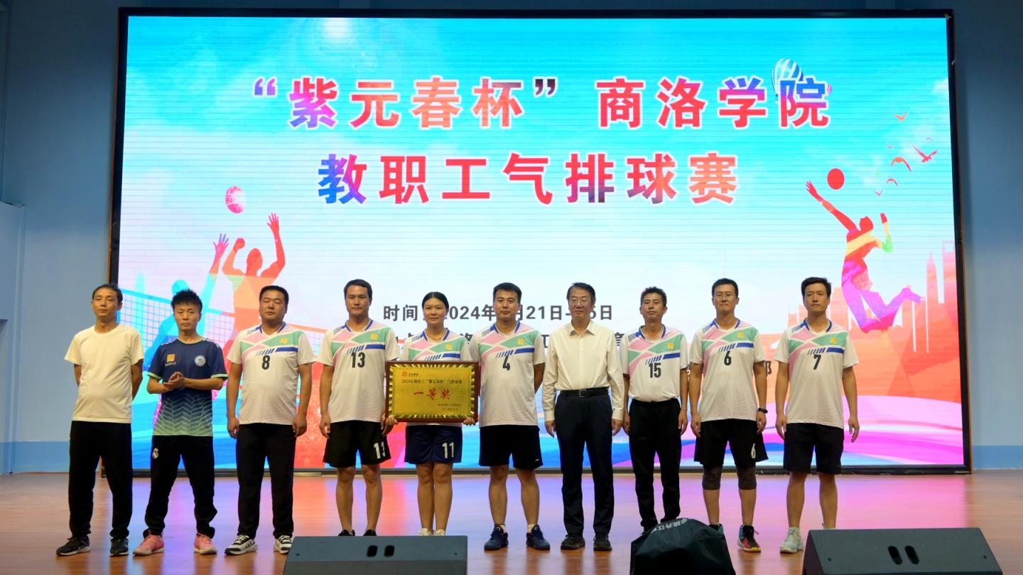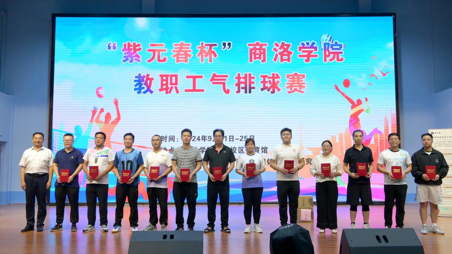 9月25日晚,“紫元春”杯商洛學(xué)院2024年教職工氣排球賽在丹江校區(qū)體育館落下帷幕。校黨委副書記、紀(jì)委書記、排球工作專班領(lǐng)導(dǎo)小組組長(zhǎng)王浩,副校長(zhǎng)劉寶盈,陜西大道實(shí)業(yè)集團(tuán)有限公司董事長(zhǎng)、陜西紫元春酒莊有限公司總經(jīng)理房映儒觀摩決賽并為獲獎(jiǎng)代表隊(duì)頒獎(jiǎng)。劉寶盈致閉幕詞。