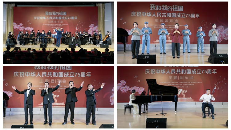 為慶祝新中國75周年華誕,增強(qiáng)商洛市民的愛國熱情和民族自豪感,9月29日晚,由商洛市文學(xué)藝術(shù)界聯(lián)合會(huì)、商洛學(xué)院藝術(shù)學(xué)院、商洛市音樂家協(xié)會(huì)聯(lián)合主辦“我和我的祖國——慶祝中華人民共和國成立75周年主題音樂會(huì)”在商洛學(xué)院隆重舉辦。商洛市文聯(lián)黨組書記、主席劉明權(quán),市文聯(lián)黨組成員、專職副主席李志華,商洛學(xué)院黨委委員、組織部部長張向東,黨委委員、宣傳部部長王霄飛,商洛市音協(xié)主席李世鵬,藝術(shù)學(xué)院黨政領(lǐng)導(dǎo)班子與300余名師生及社會(huì)各界人士共同觀看演出。
