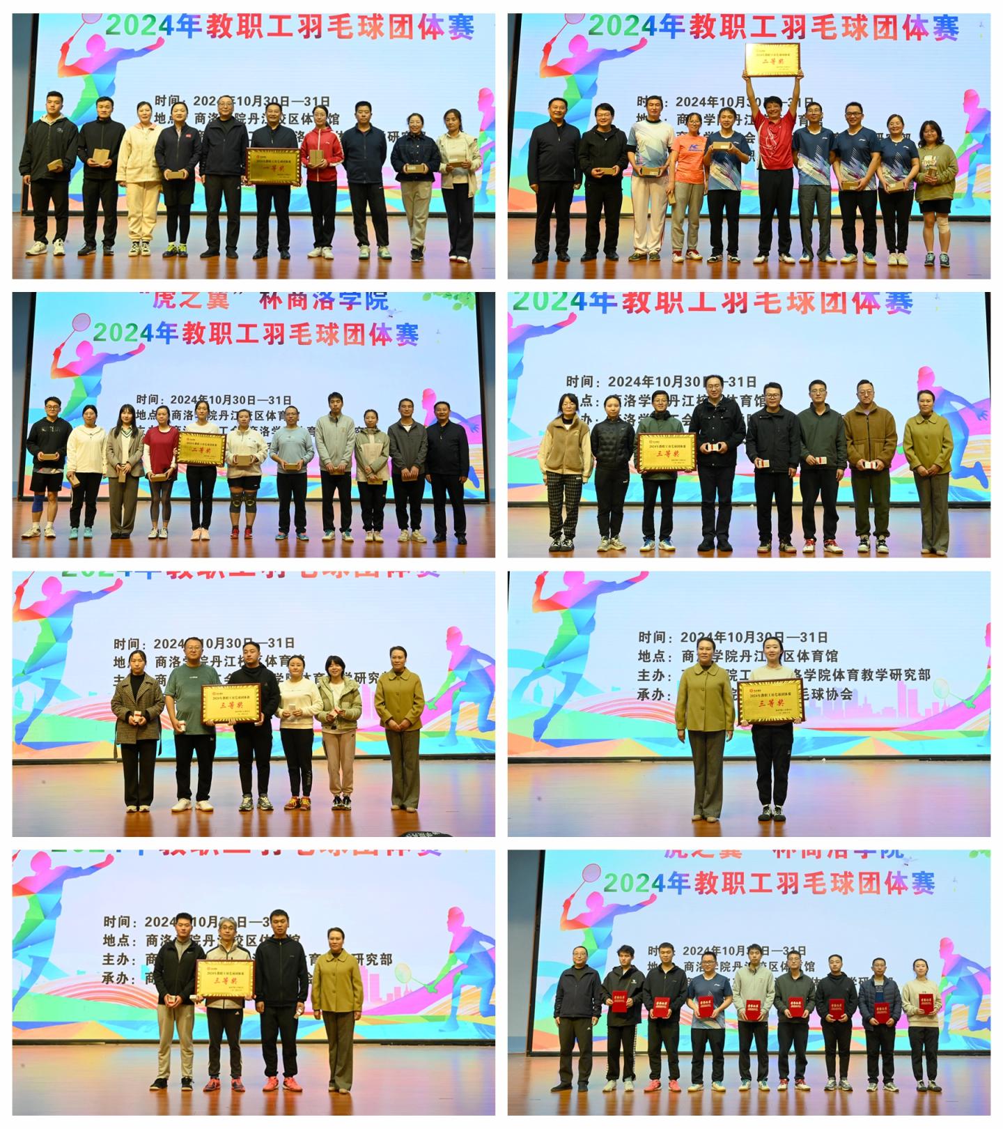 10月30日至31日,由商洛學(xué)院工會和體育教學(xué)研究部聯(lián)合主辦的“虎之翼”杯教職工羽毛球團體賽,在丹江校區(qū)體育館圓滿落幕。副校長劉寶盈出席閉幕式并為獲獎團隊頒獎。工會、體育教學(xué)研究部相關(guān)負(fù)責(zé)人與工會各分會近200名教職工共同參與活動。閉幕式由工會副主席魚小強主持。