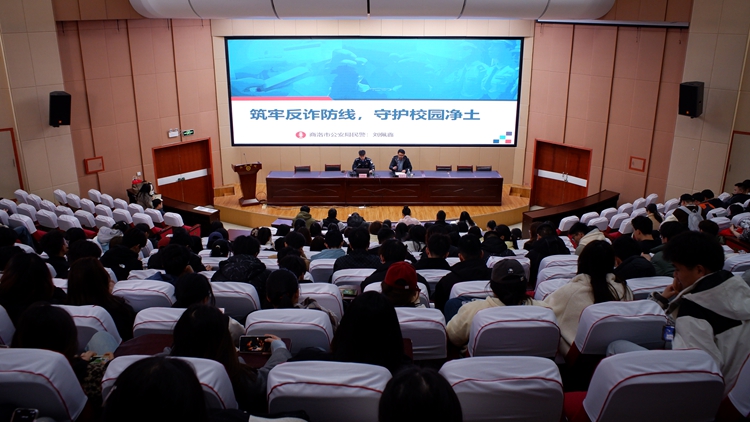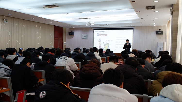 為全面提升師生防范電信網(wǎng)絡詐騙的意識與能力,維護校園安全穩(wěn)定,3月7日下午,學校邀請商洛市公安局四級警長劉佩鑫,在北新街校區(qū)和丹江校區(qū)連作兩場防范電信詐騙專題報告會。校黨委委員、宣傳部部長王霄飛,電信學院黨委書記袁訓鋒分別主持兩校區(qū)報告會。各二級學院輔導員及學生代表500余人參加報告會。
