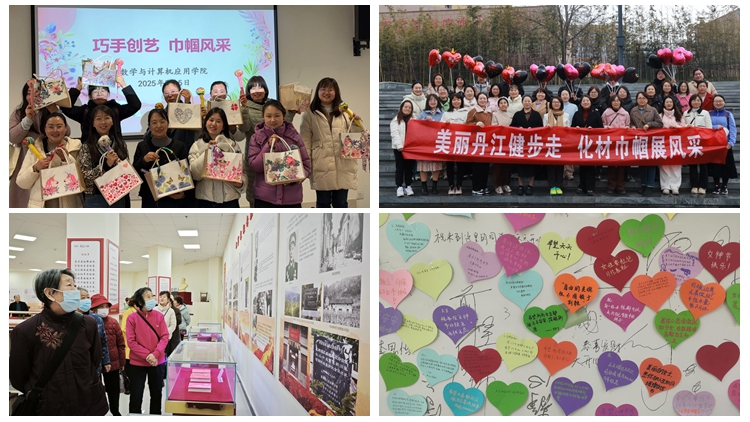 節(jié)日期間,校內(nèi)各二級單位也紛紛舉辦“巧手創(chuàng)藝巾幗風(fēng)采”手工DIY制作、“美麗丹江健步走化材巾幗展風(fēng)采”健步走、慶“三八”校園行、“綻放她力量,共筑心晴空”心靈解壓等活動,展現(xiàn)新時代巾幗風(fēng)采,共同歡慶“三八”國際勞動婦女節(jié)。