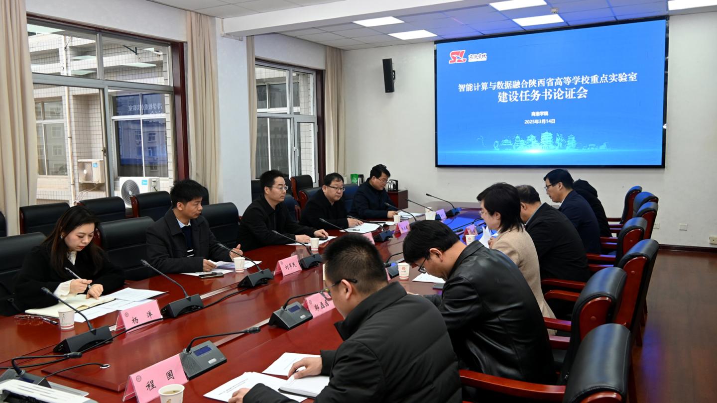 3月14日,我校召開智能計算與數(shù)據(jù)融合陜西省高等學校重點實驗室(以下簡稱“重點實驗室”)建設任務書專家論證會。以陜西科技大學數(shù)學與數(shù)據(jù)科學學院院長、二級教授李劍擔任組長的論證專家組現(xiàn)場聽取了重點實驗室建設計劃任務匯報。副校長王新軍出席會議??萍继?、數(shù)計學院相關負責人及重點實驗室骨干教師參加會議。