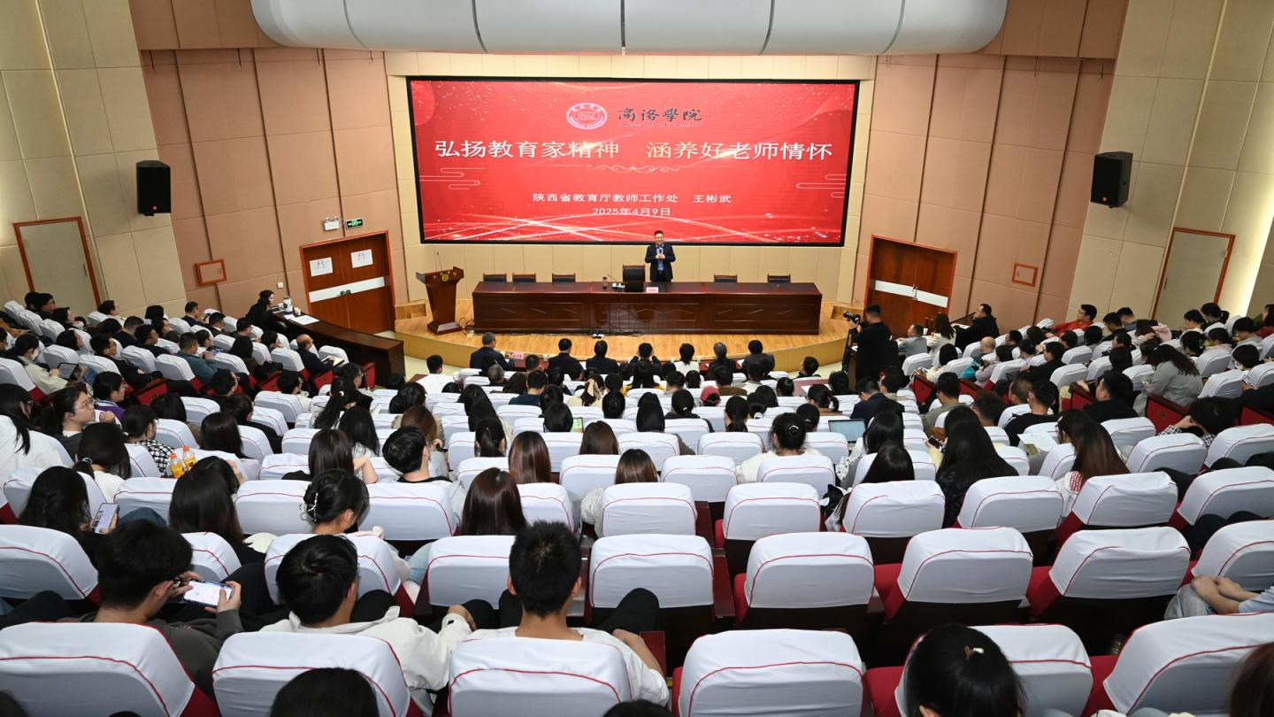 為貫徹落實習(xí)近平總書記關(guān)于大力弘揚(yáng)教育家精神的重要指示,營造學(xué)習(xí)和弘揚(yáng)教育家精神的良好氛圍,4月9日,學(xué)校特邀陜西省教育廳教師工作處處長王彬武為我校師生作《弘揚(yáng)教育家精神涵養(yǎng)好老師情懷》專題報告,校黨委副書記劉寶盈出席報告會并致辭。我校教師、師范生代表400余人參加了報告會。