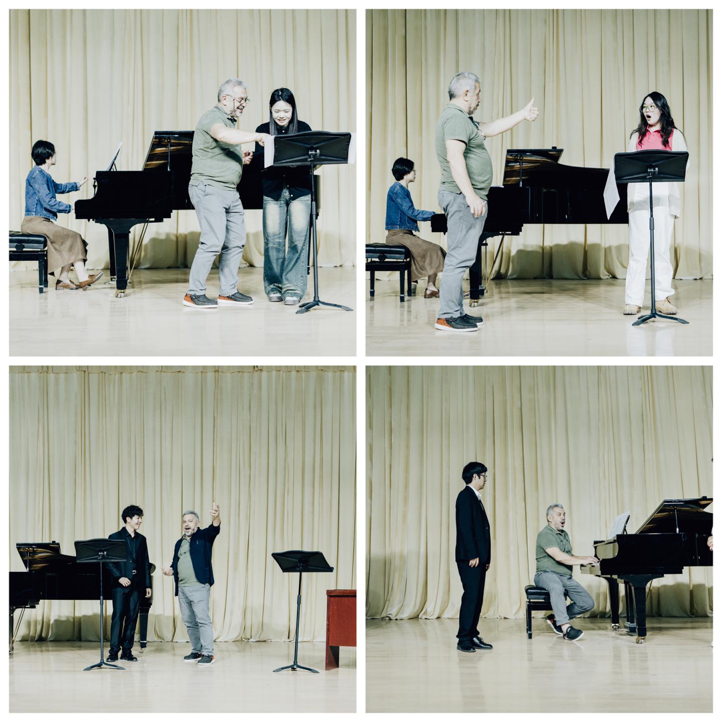 在為期三天半的公開課期間,斯皮內(nèi)利教授從氣息運(yùn)用、發(fā)聲舒展性、語(yǔ)言準(zhǔn)確性、歌曲處理以及舞臺(tái)表演等方面對(duì)藝術(shù)學(xué)院音樂(lè)學(xué)專業(yè)30余名學(xué)生進(jìn)行一對(duì)一指導(dǎo),音樂(lè)系全體師生現(xiàn)場(chǎng)觀摩學(xué)習(xí)。