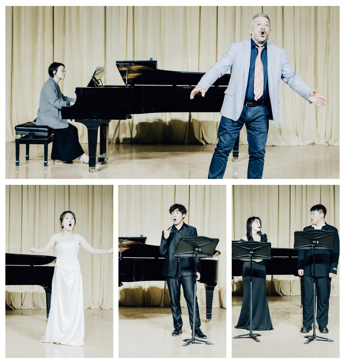 在杰拉爾多·斯皮內(nèi)利教授聲樂(lè)教學(xué)結(jié)課音樂(lè)會(huì)上,音樂(lè)2231霍辰楓等10名同學(xué)依次匯報(bào)演唱了《偷灑一滴淚》等意大利經(jīng)典歌曲。斯皮內(nèi)利教授在師生簇?fù)硐碌桥_(tái),演唱了意大利名曲《像天使一樣美麗》,將音樂(lè)會(huì)氣氛推向高潮,現(xiàn)場(chǎng)掌聲不斷。
