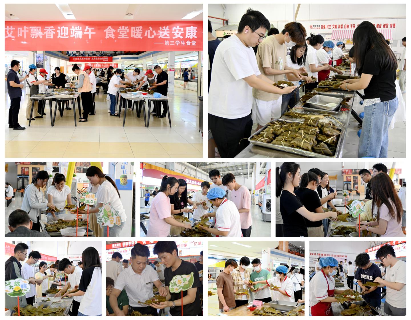 為弘揚中華優(yōu)秀傳統(tǒng)文化,深化“三全育人”綜合改革,營造積極向上的校園文化氛圍,5月28日,我校精心策劃并組織開展了“師生攜手慶端午,三全育人貫始終”主題文化活動?;顒釉诒毙陆中^(qū)與丹江校區(qū)學(xué)生食堂同步展開,吸引師生千余人參加。