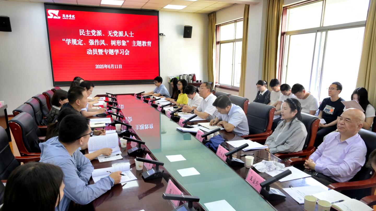 會議傳達了黨中央、省委教育工委以及市委統(tǒng)戰(zhàn)部關(guān)于支持各民主黨派、無黨派人士開展“學規(guī)定、強作風、樹形象”主題教育的有關(guān)精神,集體學習了《各民主黨派中央關(guān)于組織處理工作座談會紀要》,并對學校民主黨派、無黨派人士開展主題教育作出了安排部署。與會人員集體觀看了警示教育片,圍繞主題教育作了交流發(fā)言。