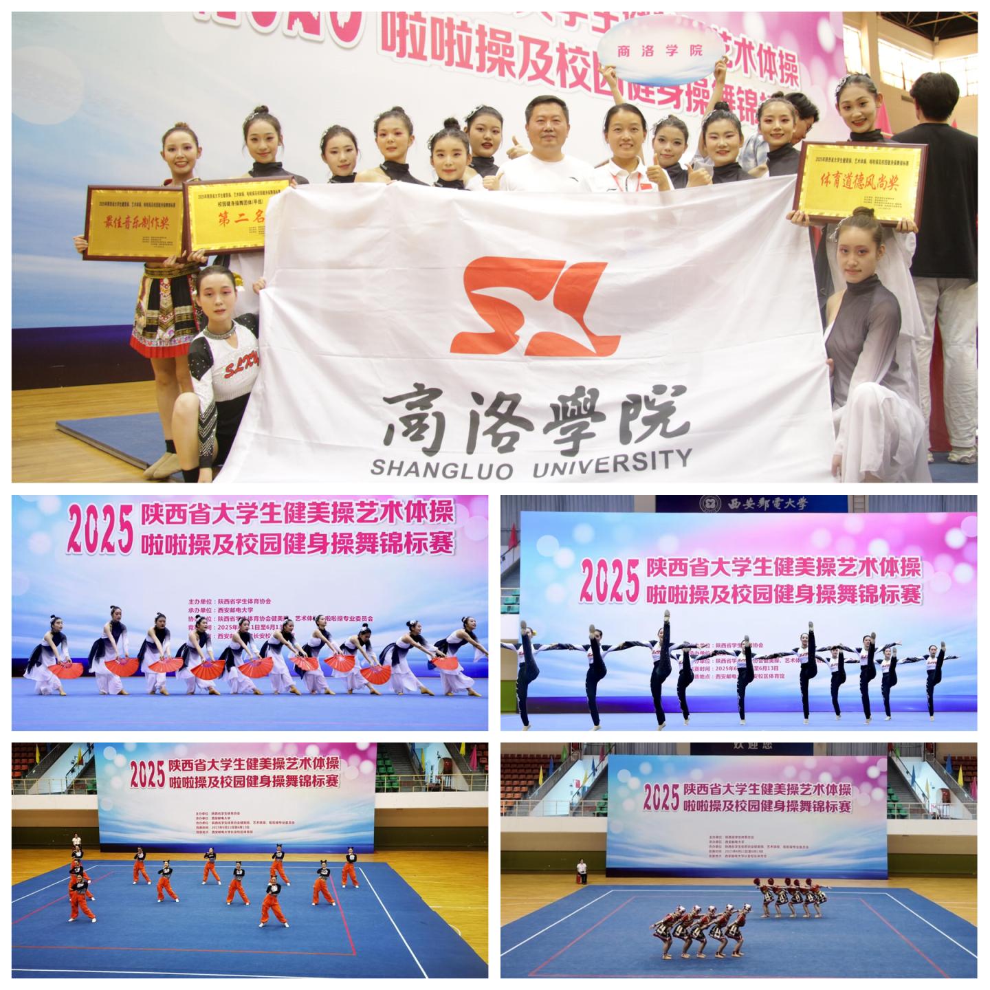 6月11日至12日,2025年陜西省大學(xué)生健美操、藝術(shù)體操、啦啦操及校園健身操舞錦標(biāo)賽在西安舉辦。我校參賽隊(duì)伍獲得團(tuán)體總分第二名和“體育道德風(fēng)尚獎(jiǎng)”“最佳音樂制作獎(jiǎng)”,在啦啦操規(guī)定動(dòng)作、健身舞、排舞自選等項(xiàng)目中獲得第一名2項(xiàng)、第二名1項(xiàng)、第四名1項(xiàng)。教練員張馨嬌獲評(píng)“優(yōu)秀教練員”稱號(hào)。