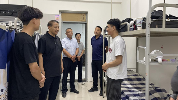 6月23日晚,校黨委副書記王新軍帶領(lǐng)學(xué)生處、后勤保障處負責(zé)人及工作人員深入學(xué)生社區(qū),看望200余名因教資體檢暫未離校的2025屆畢業(yè)生。