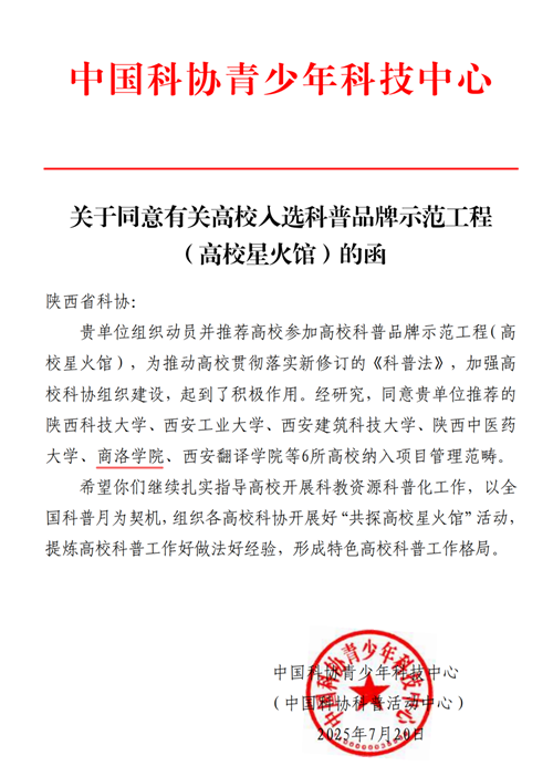 近日,中國科協(xié)青少年科技中心公布了高??破掌放剖痉豆こ蹋ǜ咝P腔痧^)入選名單,我校憑借在科普資源轉(zhuǎn)化、科普社會服務等工作中的突出表現(xiàn)成功入選,獲得國家級平臺的認可與支持,標志著我校科普工作邁上更高臺階。
